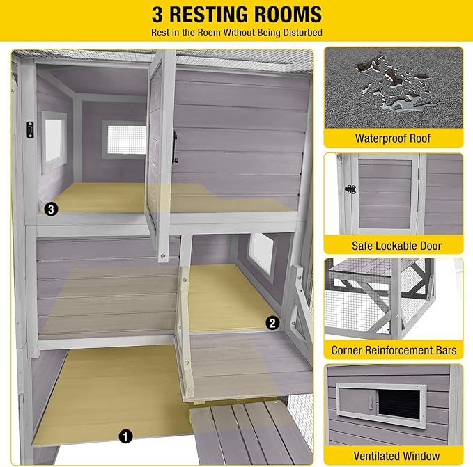 - Well-Designed Cat House: Outdoor cat enclosure includes 4 tier loft, 3 resting rooms, 5 windows (4 acrylic windows, 1 sliding window), 3 platforms. Spacious living area is the perfect solution to keep your cats, raccoons, squirrels, lizards, birds, pigeons safe and enjoy nature within a catio space.