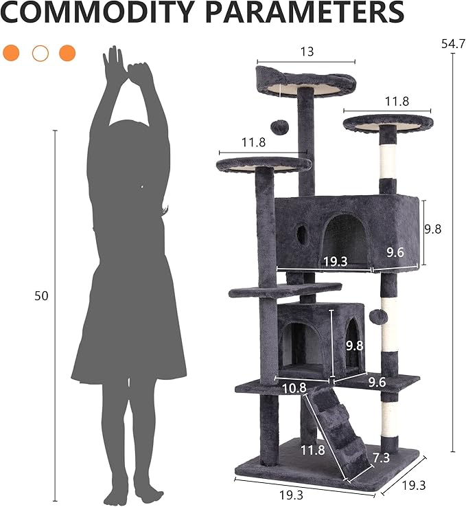 - 😸【Easy to Assemble & Worry-Free After-Sales】 Our Cat Tree has equipped with detailed graphic instructions for hassle-free installation,you can be installed it easily in few minutes! Don't worry about assembly of our cat condo! If you have any questions for our cat tower, please feel free to contact us,we will come back to you within 24 hours!