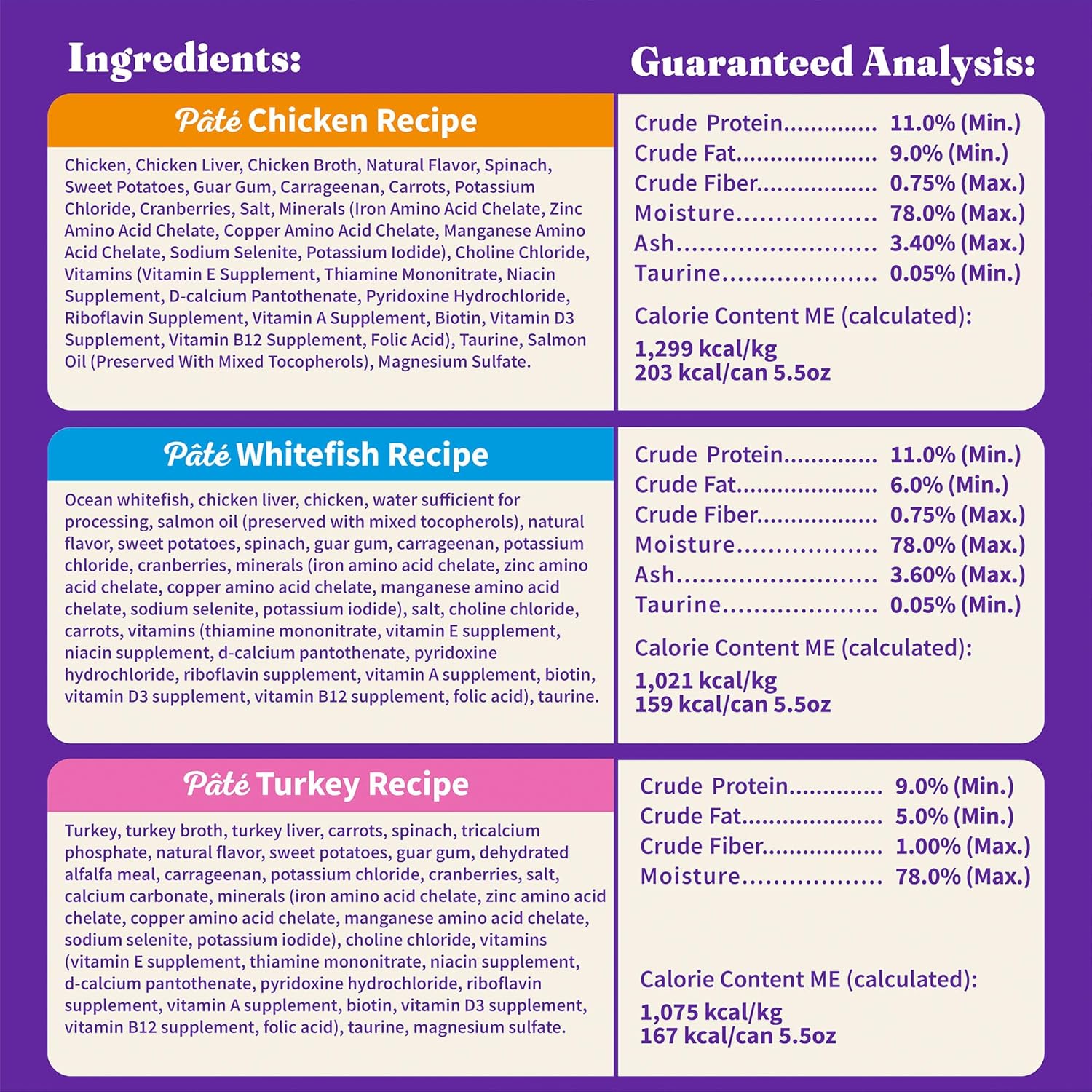 Halo Wet Cat Food Variety Pack, Three Canned Wet Cat Pate, Chicken, Turkey & Whitefish, 5.5 Oz Can (Pack of 12)