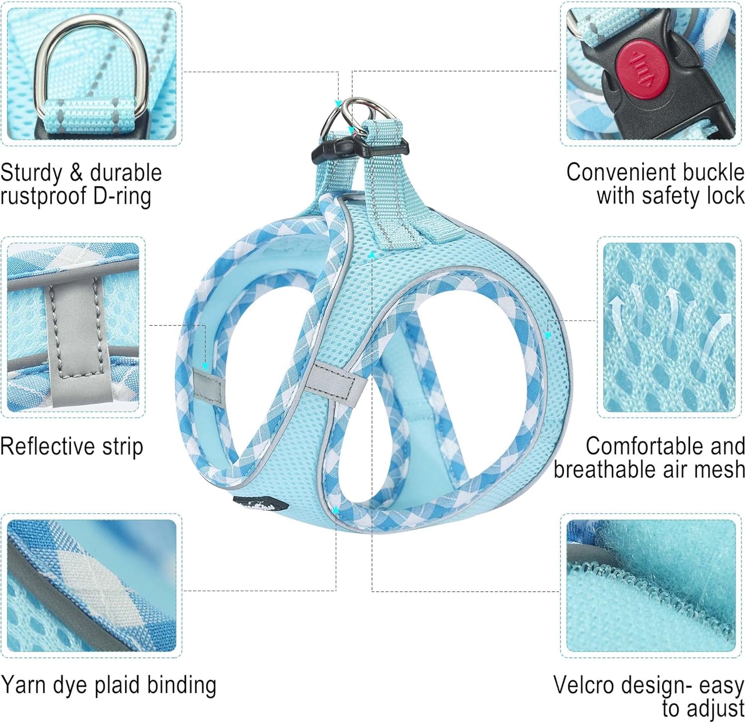 - 【 AIR MESH 】- Dog harness is made of durable thickened air mesh that featured with breathable, lightweight, comfortable, and quick-dry