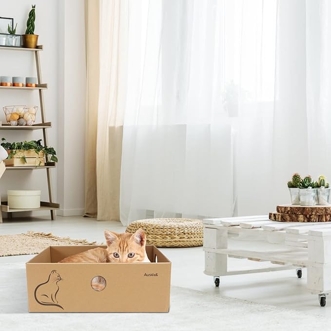 - 😺【Size of Cardboard & Box】- Boxx1 Size: 14.6" L * 10.6" W * 5.1" H, Cardboardx4 Size:14.2" L * 10.4" W * 1.22" H