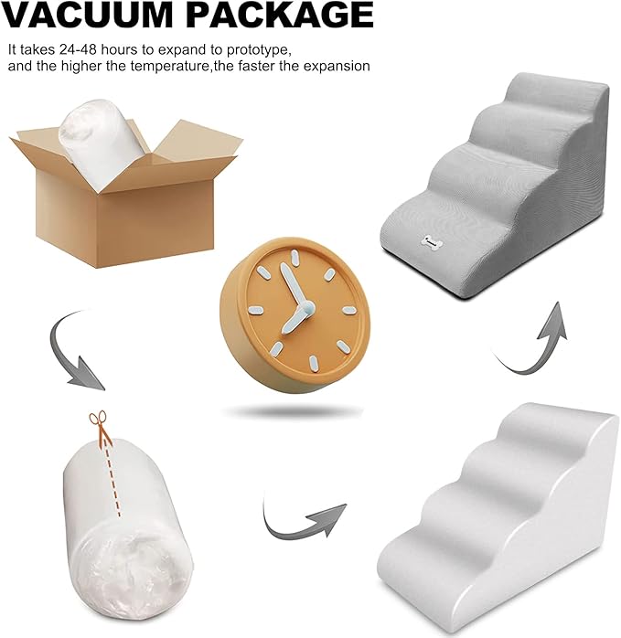 Dog Stairs, 4-Step Non-Slip Pet Ramp, High Resilience Sponge, Pink