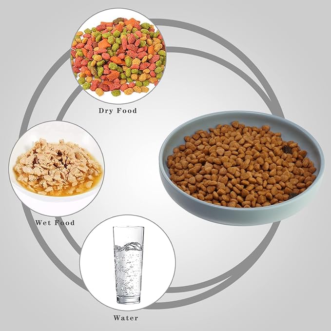 - Wide Shallow and Flat Bowls for Whisker Fatigue Relief: Luckily, there is an easy solution for whisker fatigue.We provided some flat cat bowls that are specifically designed to be whisker fatigue relief. These bowls have a wider opening in 6inch and tend to be shallow so the cat’s whisker’s do not brush against the sides of the bowl while they eat their food or sip water,create a comfortable&healthier eatting environment.