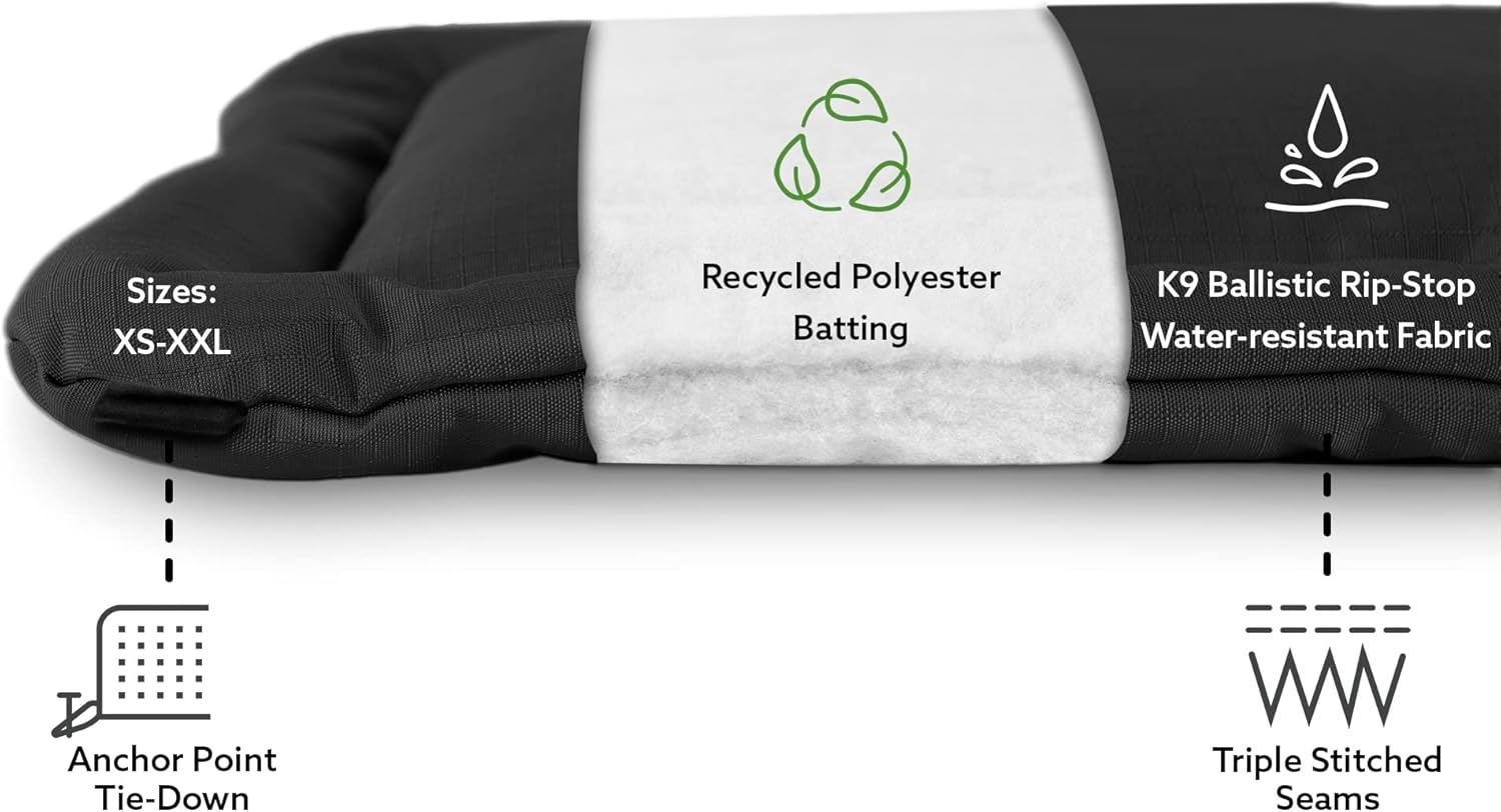 - Easy Clean: The ballistic material is fur, dirt, stain, and odor resistant. It can be spot-cleaned between uses with a damp towel, or you can machine wash it whole for a deeper cleaning.