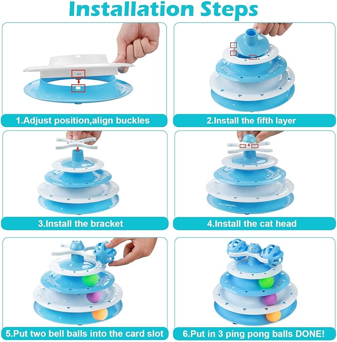 - Stack & Sturdy Construction: This cat toy is made of ultra-strong and tear-resistant PP that stands up to crazy cat scratcher antics, a detachable multi-layer for easy cleanup, with an anti-slip base to prevent product rollover. So it is perfect for one or more cats.