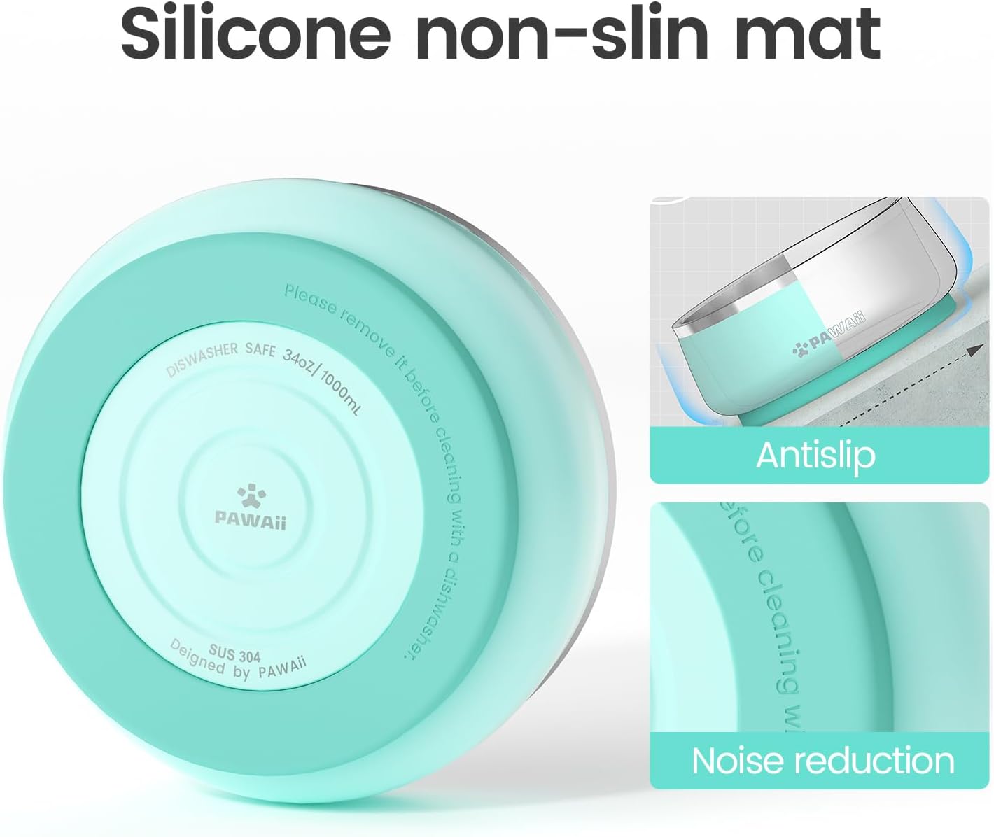 Pawaii Stainless Steel Dog Bowl with Non-Slip Rubber Base & Double Wall Insulation - Durable Design | Includes ID Tag | Dishwasher Safe Food & Water Bowl for All Dogs (68oz)