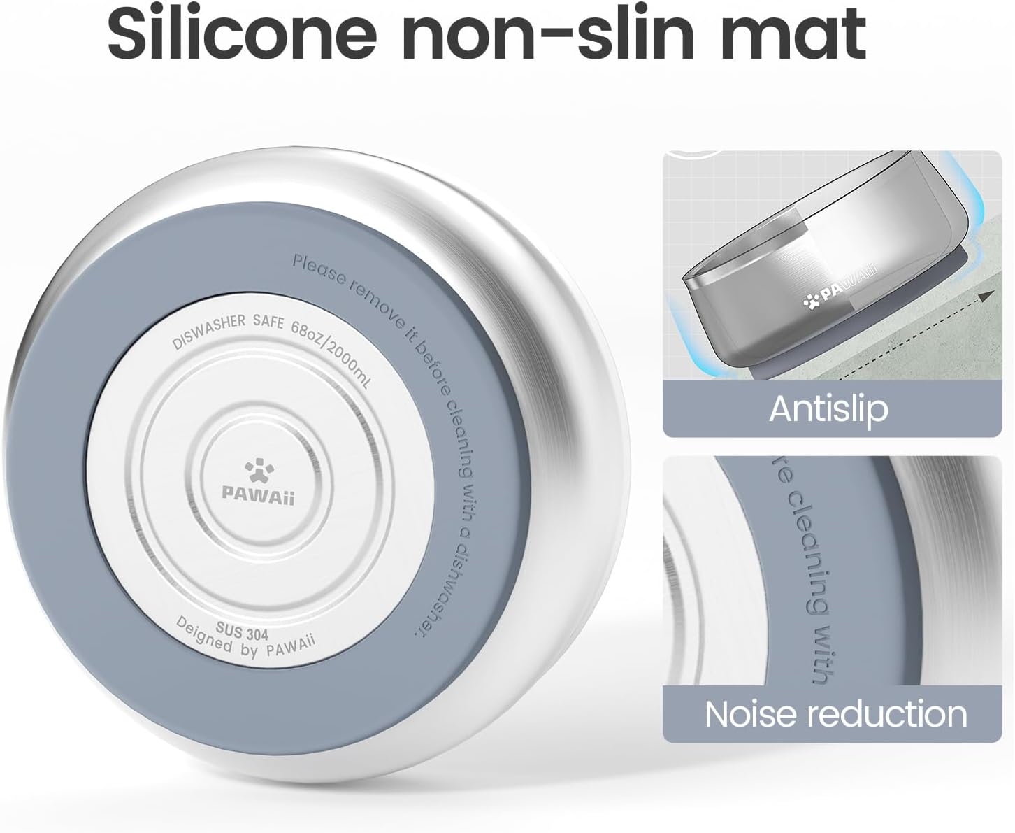 Pawaii Stainless Steel Dog Bowl with Non-Slip Rubber Base & Double Wall Insulation - Durable Design | Includes ID Tag | Dishwasher Safe Food & Water Bowl for All Dogs (68oz)