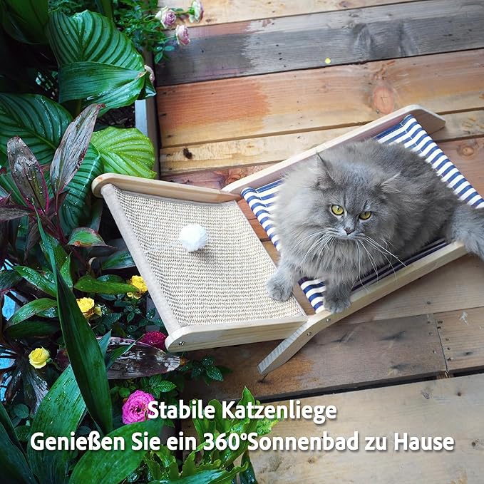 PETKARAY Beach Chair Cat Hammock, Elevated Cat Beds for Indoor Cats, Original Cozy Lounger with Sisal Scratcher and Toy Ball