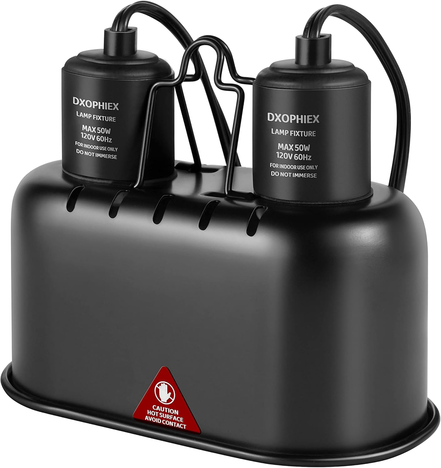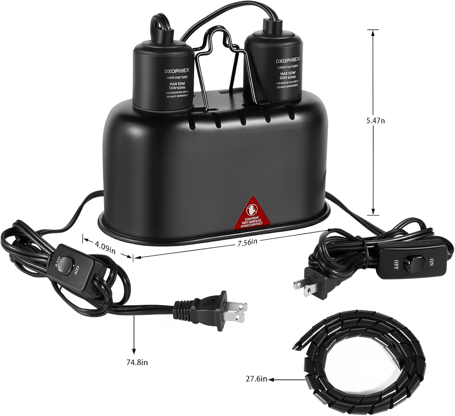 DXOPHIEX Nano Reptile Heat Lamp Max 40W Dual Reptile Light Fixture with Two Independent Switches, UVB Light Fixture Dual Dome Lamp for Bearded Dragon, Turtles, Snake and Lizard Terrarium