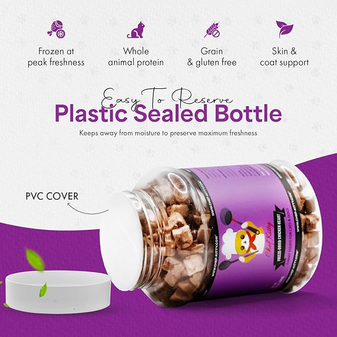 - Why Freeze Dried Chicken Heart Treats? - Like people, animals crave natural sources of protein. Our freeze-drying process ensures each of our freeze dried treats for cats and dogs keeps the robust flavor and vital nutrients of fresh meat. Our treats are single Ingredient, No Additives: Healthy, all-natural treat for cats and dogs – no hormones, preservatives, or fillers.
