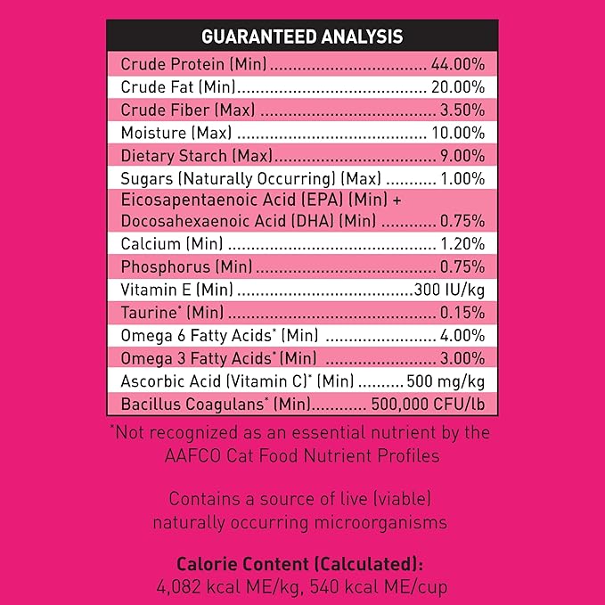 - Scientifically formulated with ultra-low carbohydrates (less than 8% dietary starch) to provide more carnivorous amino acids from meat-based protein ingredients