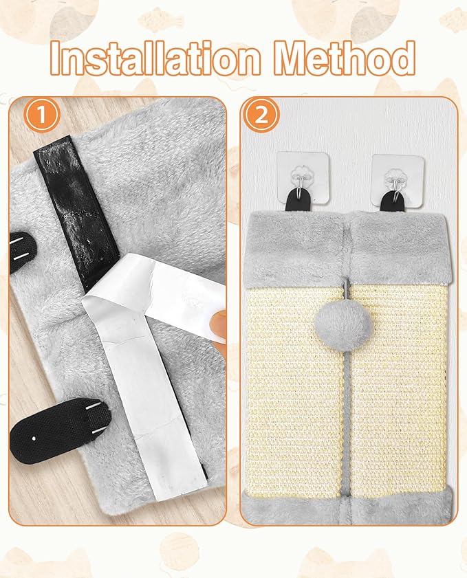 - Easy to Install: Wall mount cat scratcher corner with wall fixings and screws, the corner scratcher around a wall corner and affix using nails. The product includes nylon hanging straps; nails; and wall plugs