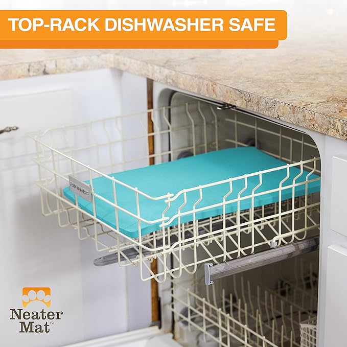 - PET MATS PROTECT FLOORS FROM SPILLS: Neater Mat pet mat goes under your cat or dog’s food and water bowls to catch any spills or splashes from getting onto your floor.