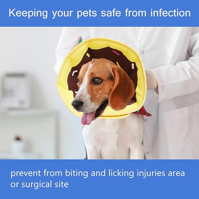 - Cute Design - The soft dog/cat cones to stop licking are available in XS/S/M/L, used in kittens, puppies and small medium dogs and cats. Design with donut, watermelon, and strawberry cute printed patterns, make your pets looks more adorable.