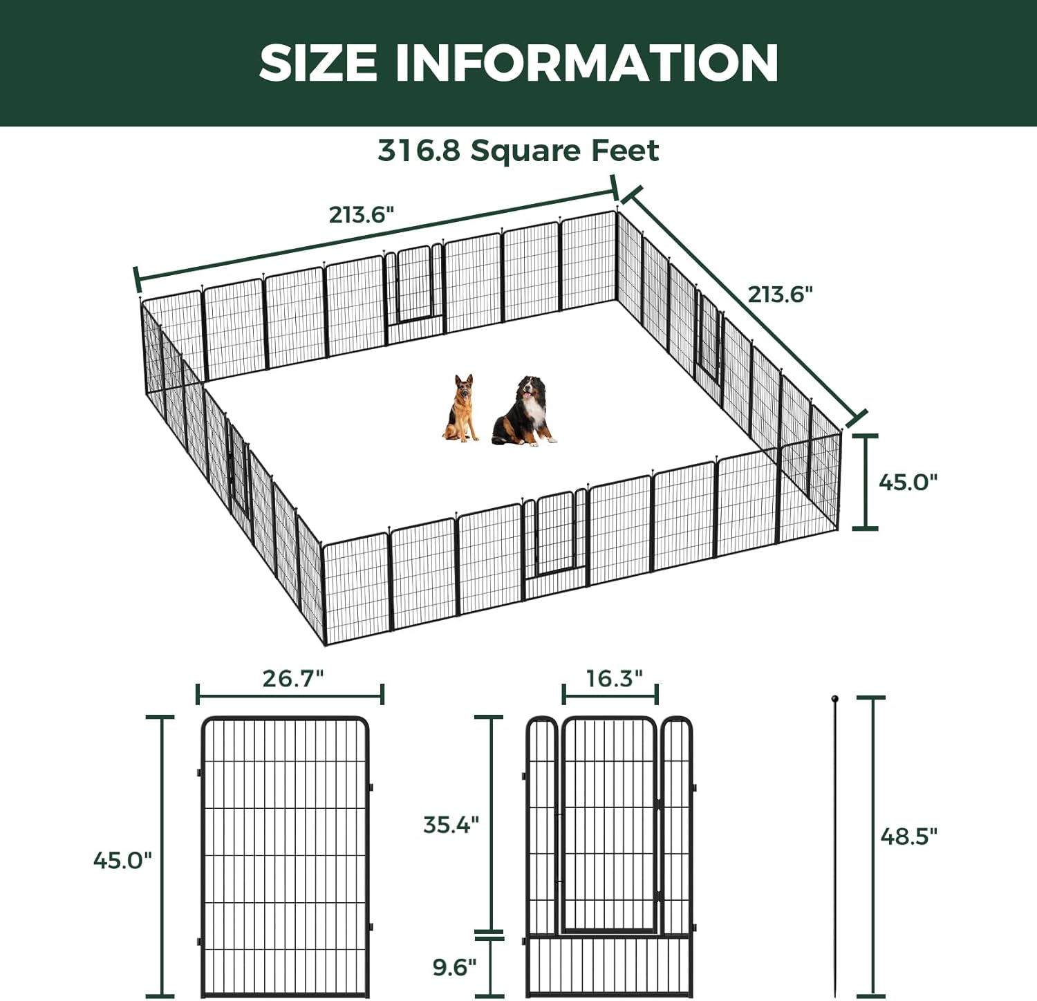 - Super easy to assemble: It won’t take you more than 5 minutes to assemble these portable dog fences as well as pack them away due to the rod-connected design. Meanwhile, panels can be added or removed freely to give you a fully flexible area and arrange the dog pen in any shape you need.