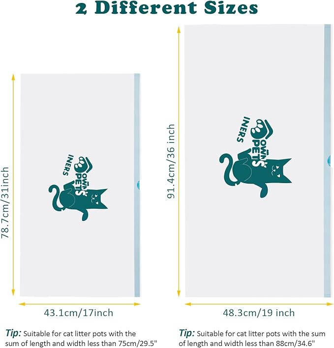 - Large/Extra Large Sizes: We offer two sizes to choose from: 31*17 inches and 36*19 inches. Suitable for most standard litter boxes. Each box comes with 10 kitty litter bags.