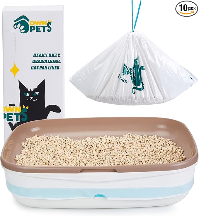 Ownpets Cat Litter Liners Large Extra Thick Cat Litter Bags Drawstring Liner Bags for Pet Cat Litter Box Tray, Unscented,10 Count 31"x 17"