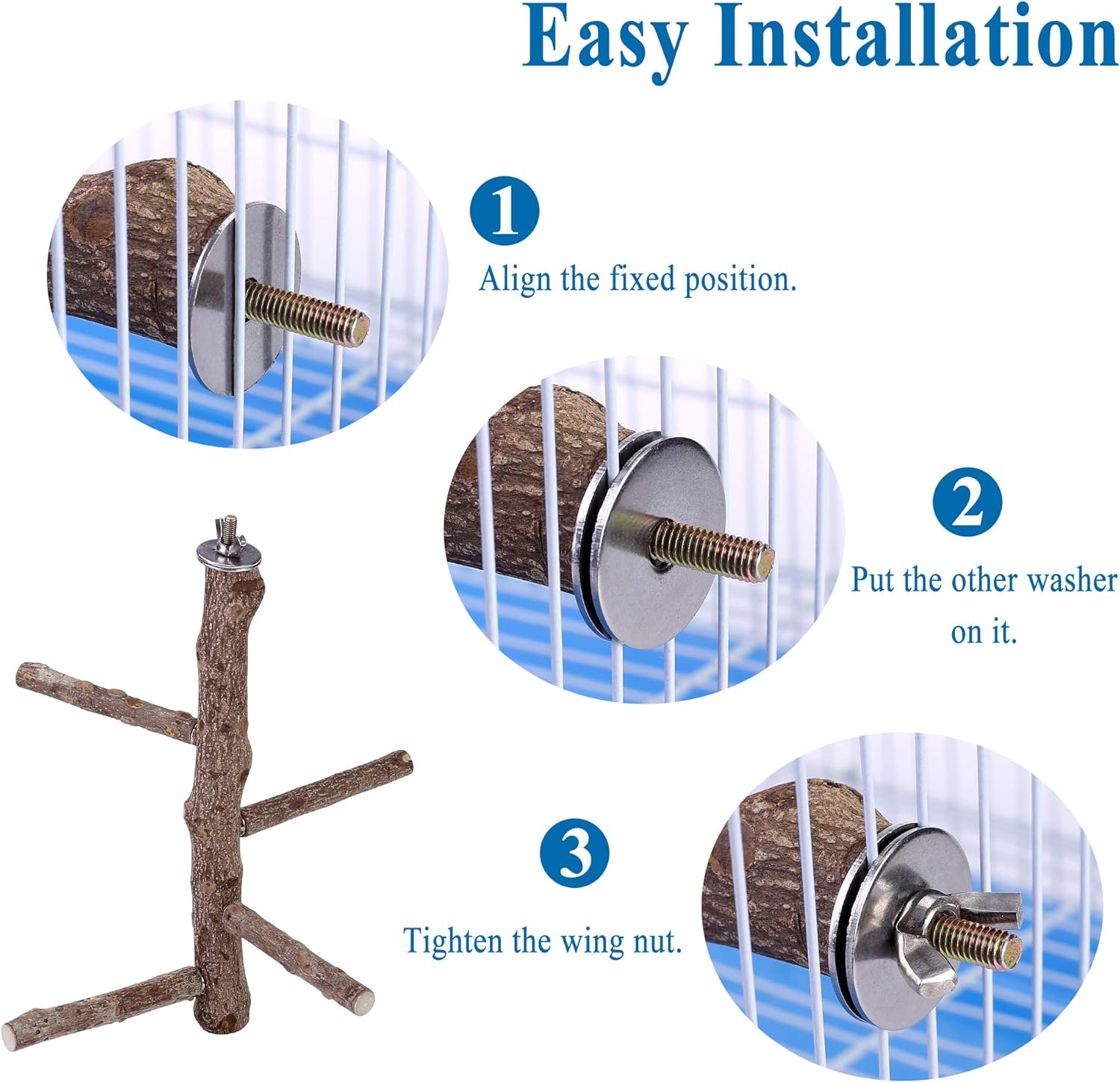 - 【Easy Installation】: The parrot perches are suitable for all bird cages. Each bird perch is equipped with built-in bolt and wing nut, super easy to install and dismantle. Once intalled it will not fall off from the cage, safe for birds to rest or play on.