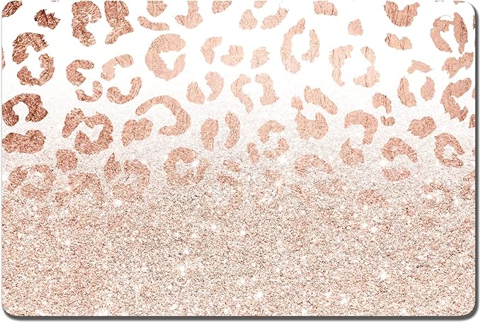 Rnivvi Dog Food Mat, 12" x 19" Leopard Absorbent Dog Cat Bowl Mat for Food and Water, Cute Anti-Slip Rubber Pet Feeding Rug Protect Floors, Puppy Placemat for Feeding & Watering Supplies, Rose