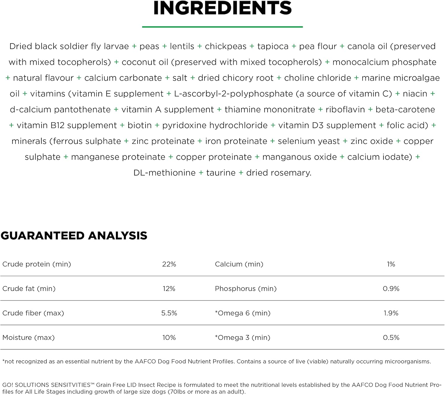 Go! Solutions Sensitivities Limited Ingredients, Grain-Free Dry Dog Food, Insect Recipe for Sensitive Stomach, 22 lb Bag
