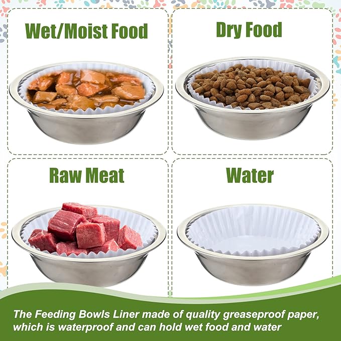 - Rich Quantity: there are 600 pieces of disposable pet bowl liners in white, abundant quantity can meet your pet's daily use and replacement needs; Please note that the package have liners only, bowls are not included