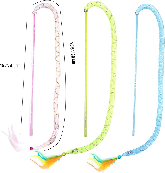 - Package includes 3 PCS cat wands [Pink,Blue,Green]