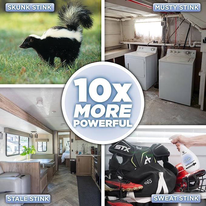 - NO FRAGRANCE, JUST FRESHNESS: This 10x more powerful POOPH, fragrance-free solution completely destroys skunk odors on a molecular level. Unlike traditional sprays that simply mask the stench, POOPH’s proprietary odor-eliminating technology actively breaks down skunk oils, leaving no trace of odor behind. It works quickly and efficiently, ensuring that your pet, home, and belongings stay free of skunk smells