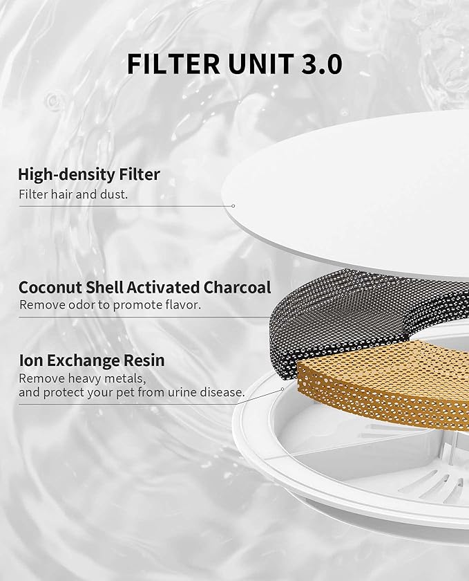 - FILTER 3.0: This petkit cat water fountain for indoor cats comes with a piece of PETKIT filter 3.0, which increases the amount of filtration material and has better filtration, providing fresh water for your pet at any time.
