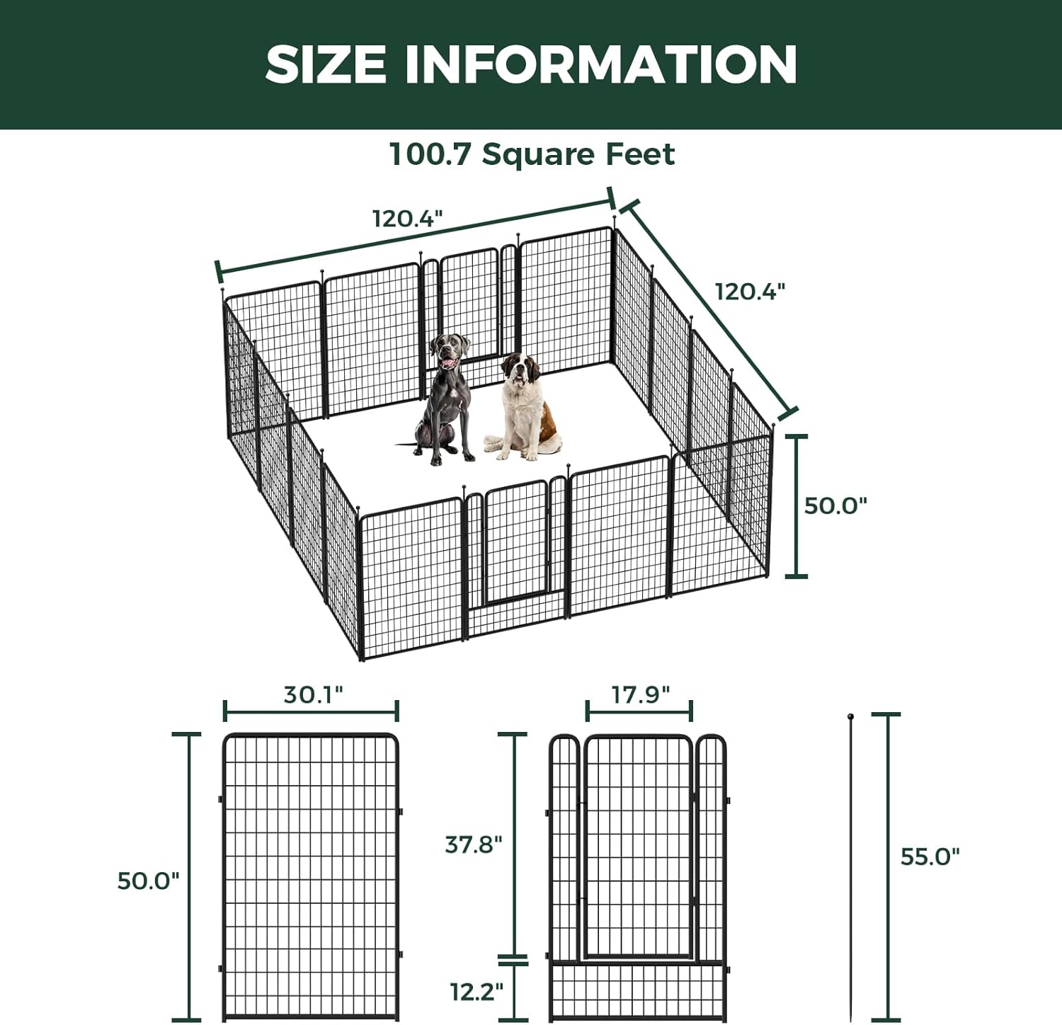 - Super easy to assemble: It won’t take you more than 5 minutes to assemble these portable dog fences as well as pack them away due to the rod-connected design. Meanwhile, panels can be added or removed freely to give you a fully flexible area and arrange the dog pen in any shape you need.