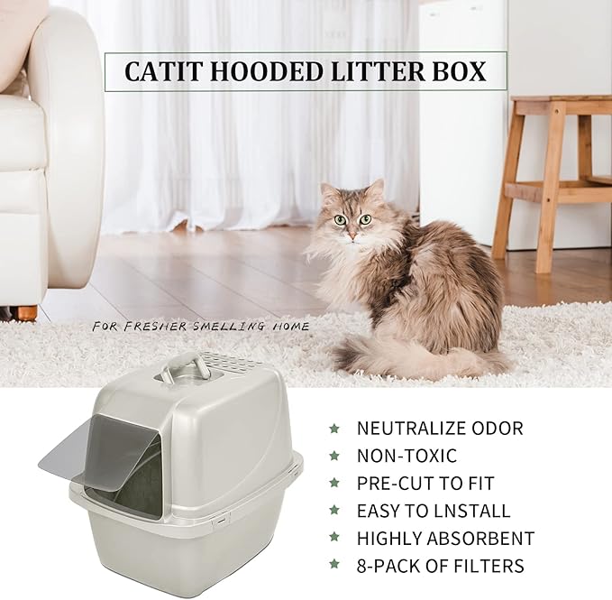 - 【8-PACK OF FILTERS】Kitty litter box filter replacement provides 8 months of odor control so your home always smells fresh and ready for unexpected guests. And we recommend changing the cat litter box filters monthly