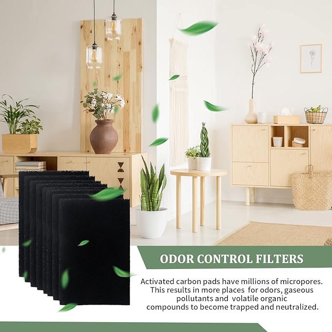 - 【LITTER BOX FILTERS】Charcoal litter box filters for hooded litter boxes: 6.49*4.4inch, only suitable for Pureness F6 Zeolite Air Filter