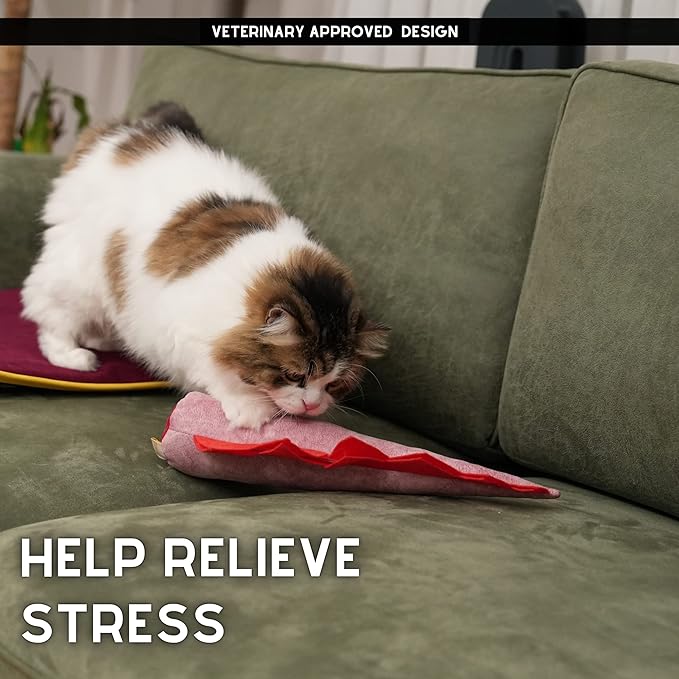 - 👨⚕️ VETERINARY DOCTOR APPROVED: On DINO, from the filling materials inside to the types of fabric used outside, each one was selected by the veterinarian, considering the most suitable products for cats. The catnip matatabi silvervine in our large cat toy helps relieve stress.