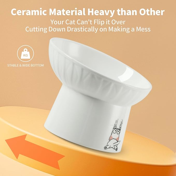 - Raised Cat Bowl-Elevated cat bowls are wide enough (6.5'' wide) to prevent whisker fatigue, which can make your cat enjoy the pleasure of eating.