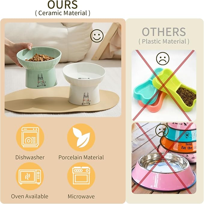 - Ceramic Material-Cat bowls are made of porcelain ceramic material, free of lead and cadmium, durable.