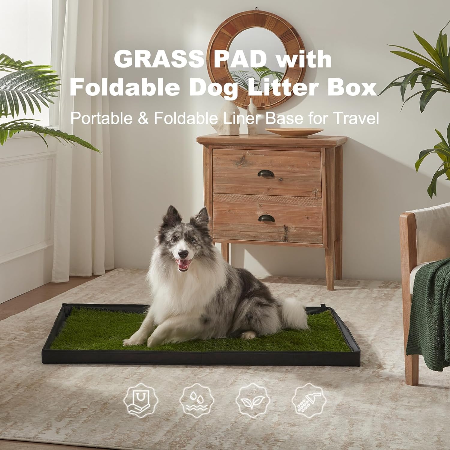 - 2 PCS OF REALISTIC ARTIFICIAL TURF : Possible for daily replacement; easy clean. The fake grass is firmly fixed in black rubber back; hard to be bitten off by pets