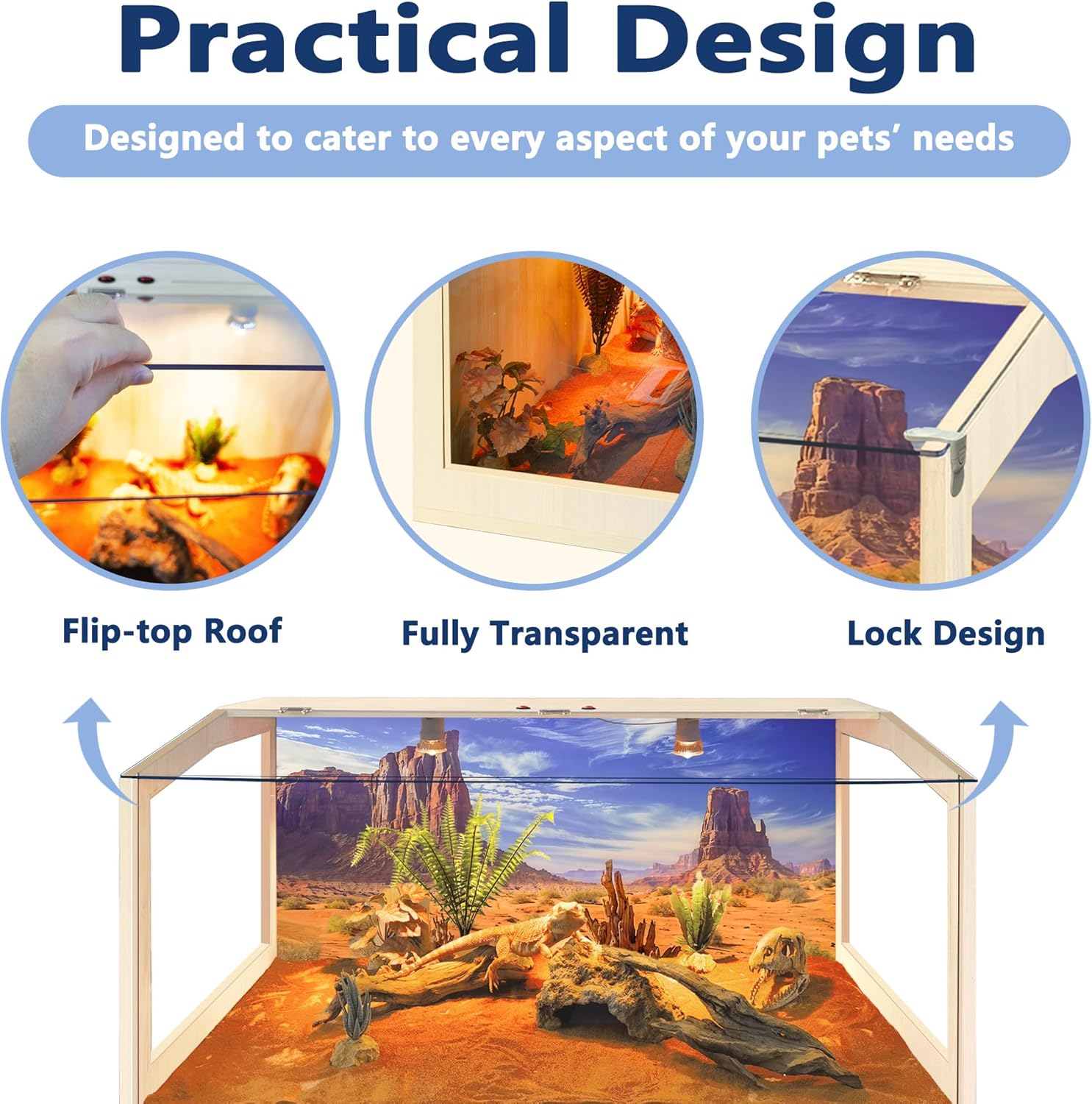 - 【Top-Quality Craftsmanship】Crafted from top-tier pet-friendly wood and acrylic, this habitat boasts durability and elegance. The high-density natural wood, coated for resistance against corrosion and water, showcases beautiful grain patterns. Its waterproof acrylic bottom sheet protects against accidents involving water or moisture.