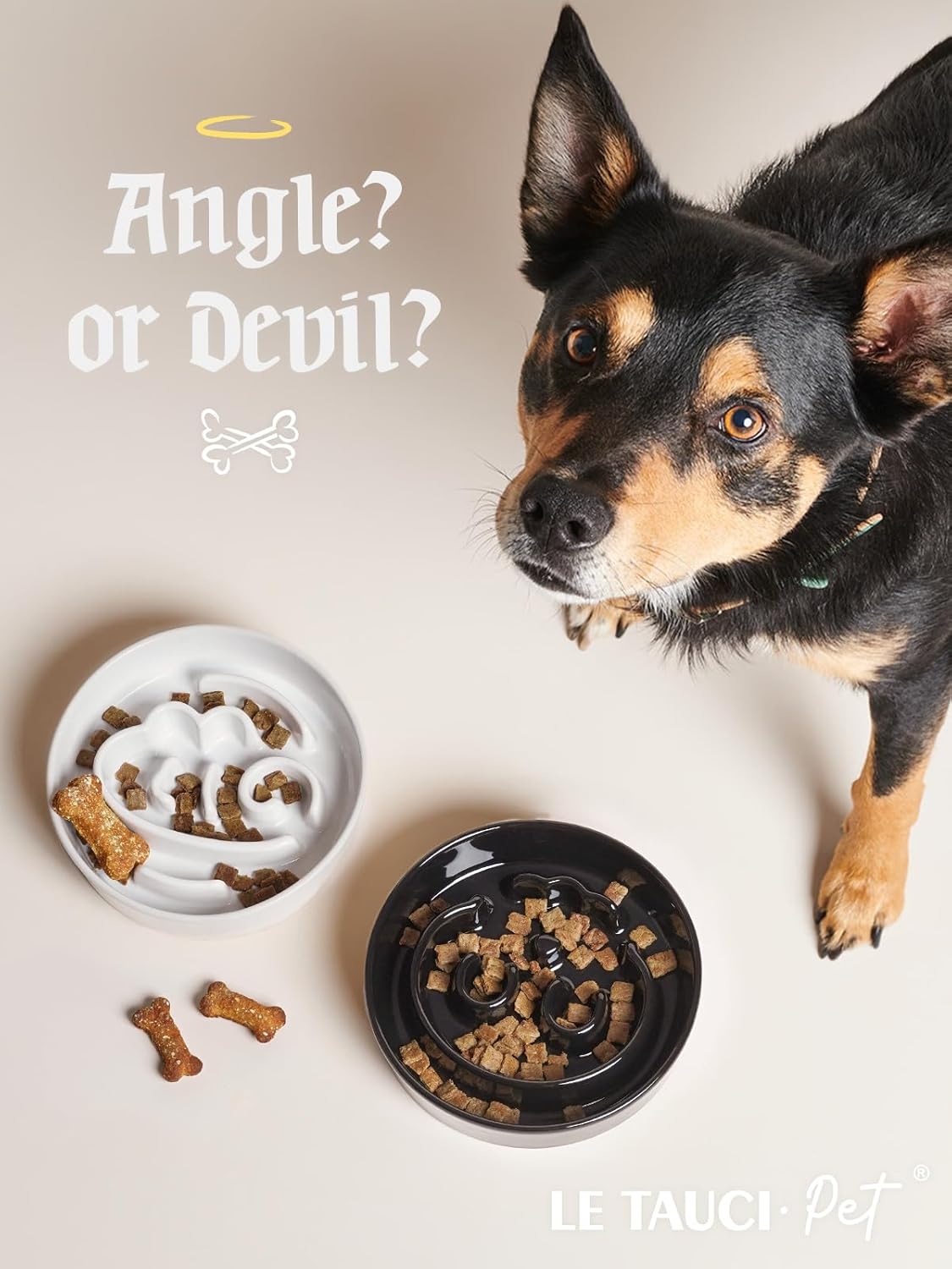 LE TAUCI Dog Bowls Slow Feeder Ceramic, 1.5 Cups Slow Feeding Dog Bowl Small Medium Breed, Puppy Bowl for Fast Eaters,Angel White