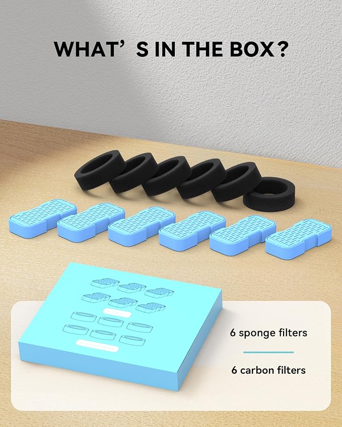 Cat Water Fountain Filters Replacement: 6 Carbon Filters + 6 Sponge Filters - Pet fountain with filter for keeping water fresh and clean, for 2L Cat Fountain H3 GOOSTOO