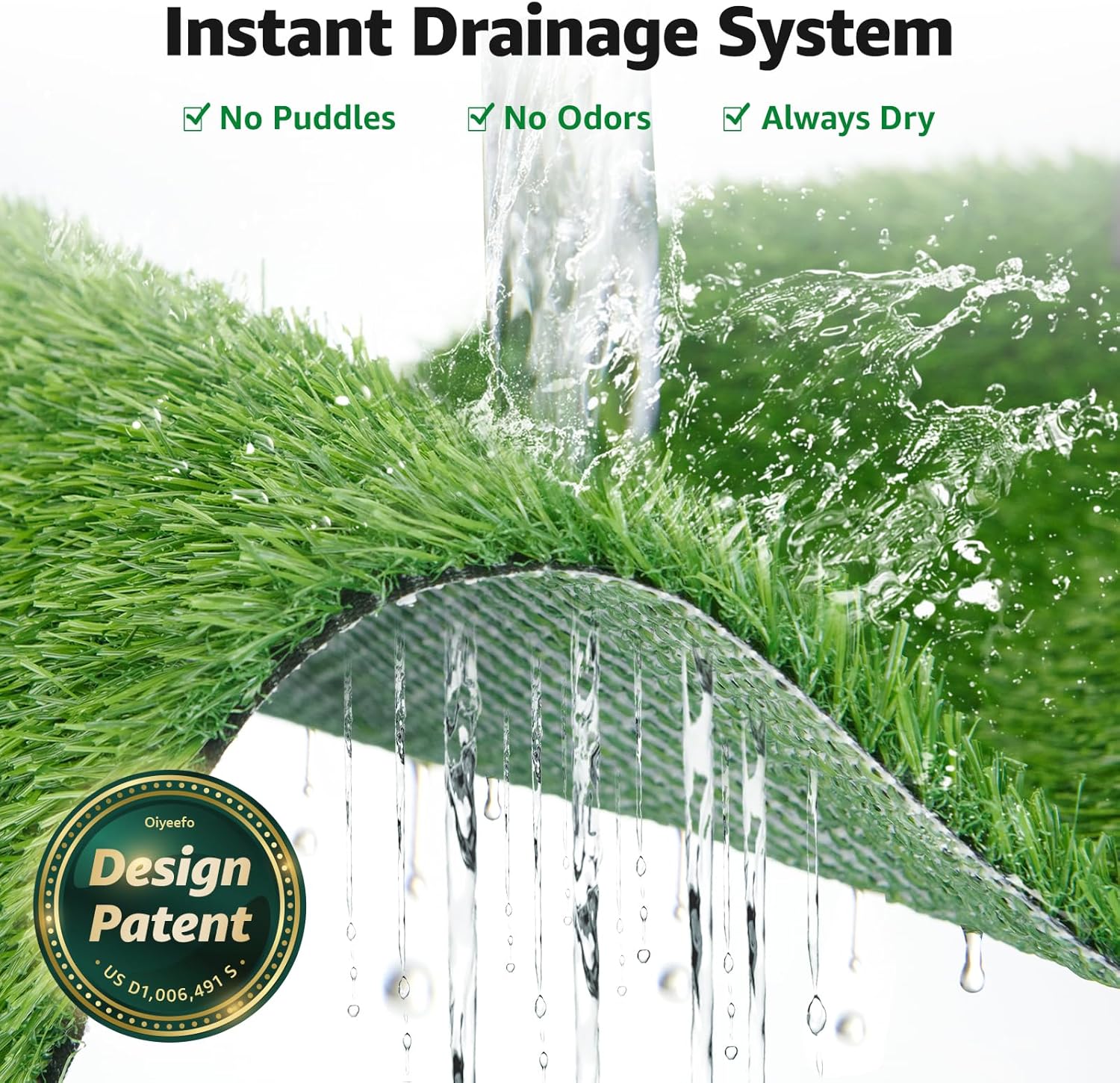 - 2 PCS PET ARTIFICIAL GRASS: The grass is about 1.25 inches tall. Not only is it realistic in appearance, but it feels just like real grass without the annoying dry, dead grass patches. It's completely safe for your furry friend to use. The artificial grass pad has excellent drainage and can quickly drain urine without staining the pet's claws.At the same time you can easily wash one while the other is ready for use.