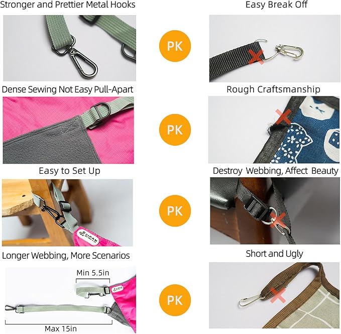 - [Solid and Durable] This breathable, double-layered cat bed is made of non-toxic materials. Super soft flannel and waterproof nylon. Thick webbing, dense sewing, and a strong and firm construction using CNC precision wiring, the sewing thread is compact and robust, not easily broken off. It is beautiful and sturdy, and it has rough chrome-plated metal hook that is easy to pick up.