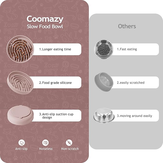 - The innovative fingerprint maze design at the bottom of our bowls effectively slows down your pet's eating speed, extending meal times and preventing choking. This cute, personalized, and unique maze design also helps distract and calm your puppy or kitty's anxiety.