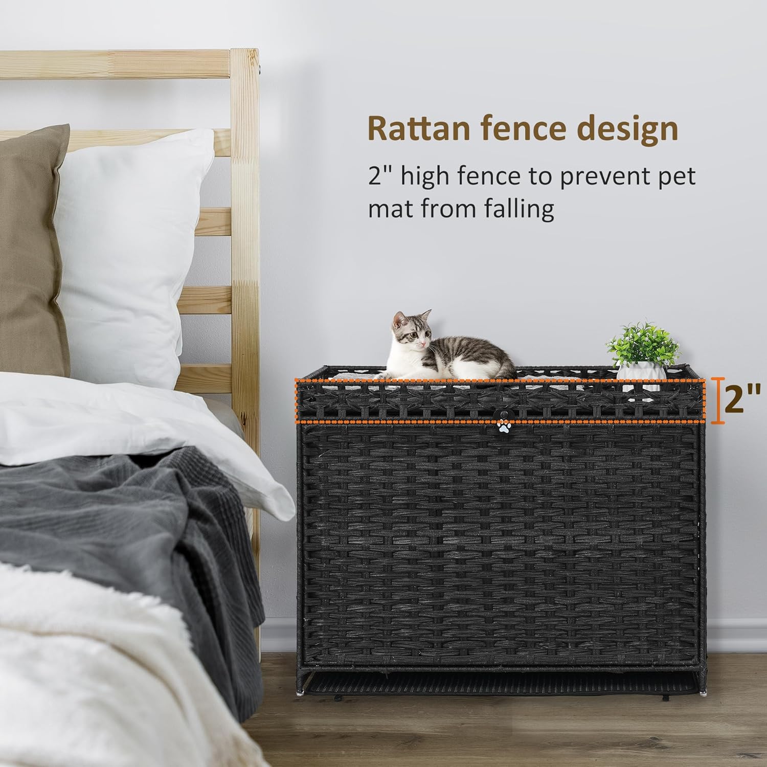 - 【Spacious room, Top fence design】Inner dimensions: 17.5” x 29.4” x 18.5”, it suits most litter boxes. The cat house is built with top rattan fence (height 2''), which can prevent pet bed from falling.