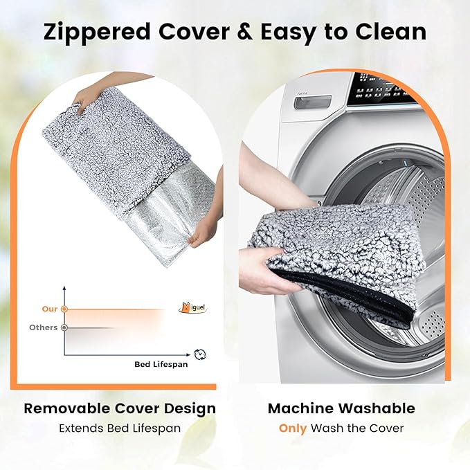 - MULTI USE & PORTABLE: Comes with a removable washable cover for effortless cleaning. The lightweight design makes it easy to move around. Whether it can be uesd as a pet crate heating pad, kennel warming mat in the room, or even outdoors on a sunny day.