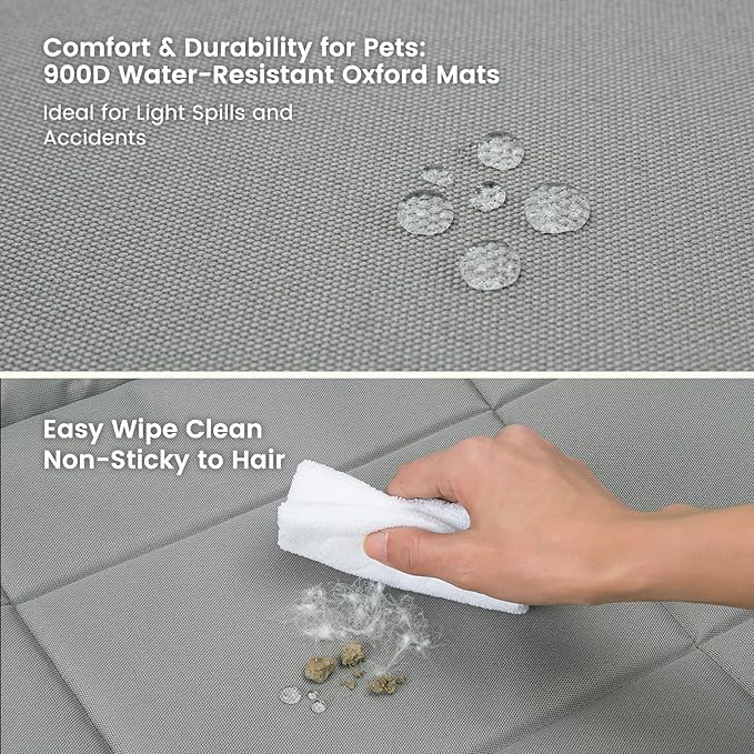 - Waterproof 900D Oxford: Waterproof dog crate bed. Tightly wowen 900D Oxford, scratch-resistant and waterproof, perfect for indoor and outdoor. No matter where you are, you can always give pets a clean place to rest and enjoy every moment of life.