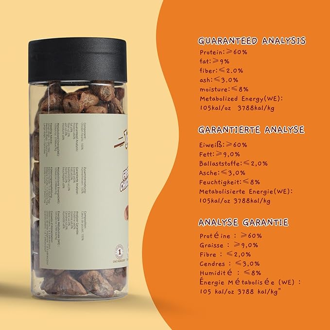 - SINGLE INGREDIENT: Freeze dried chicken hearts for cats and dogs are made with human-grade raw chicken hearts to achieve over 60% protein. The oil and fat part has been removed in advance, making the treats easy to digest without burdening the stomach and intestines