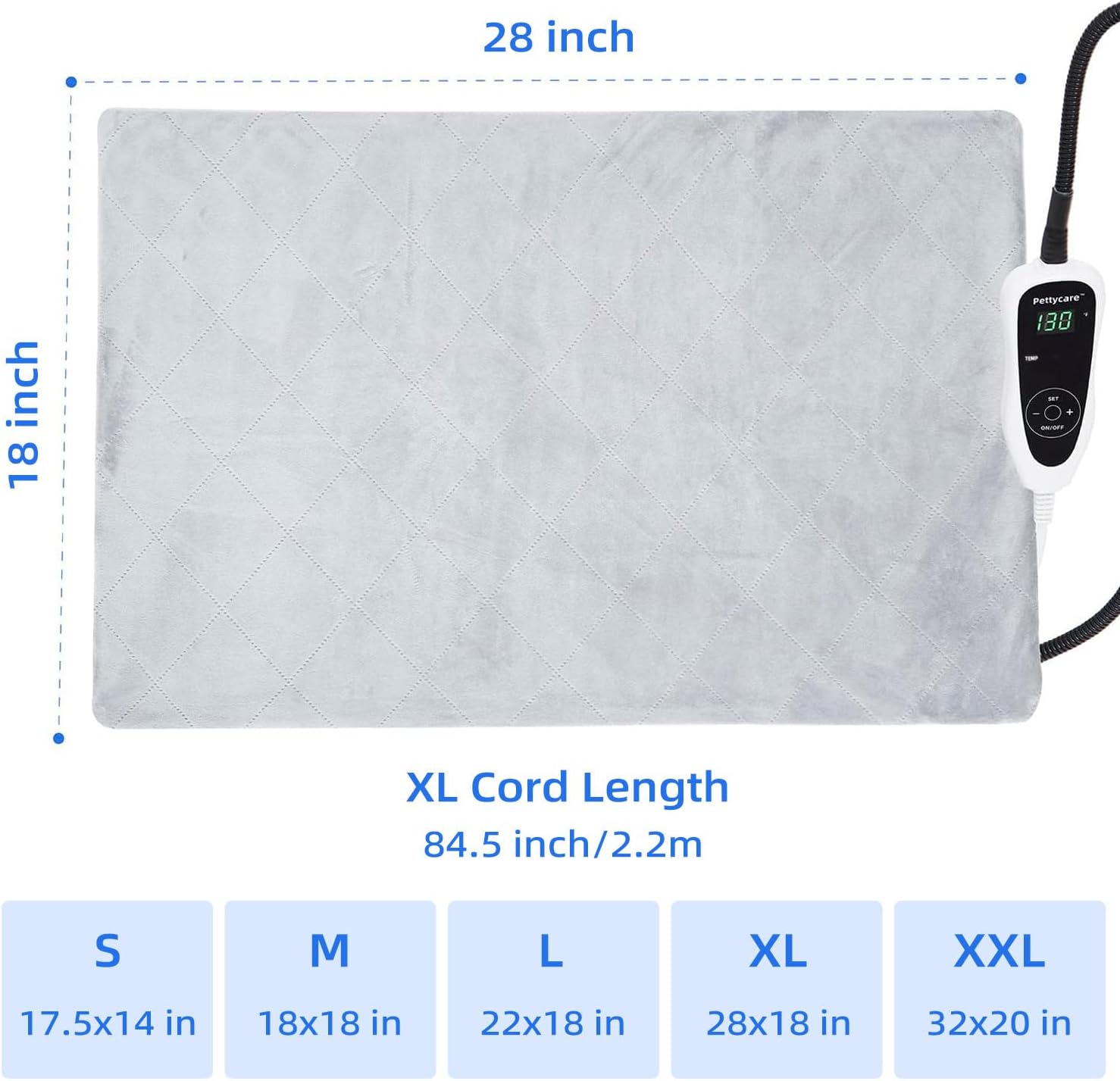pettycare Pet Heating Pad for Dog Cat, Electric Heating with Steel-Wrapped Cord, 25-level Timer & 11-level Temperature Indoor Warming Pads Easy Clean for Puppy Cat Dog XL 28x18inch