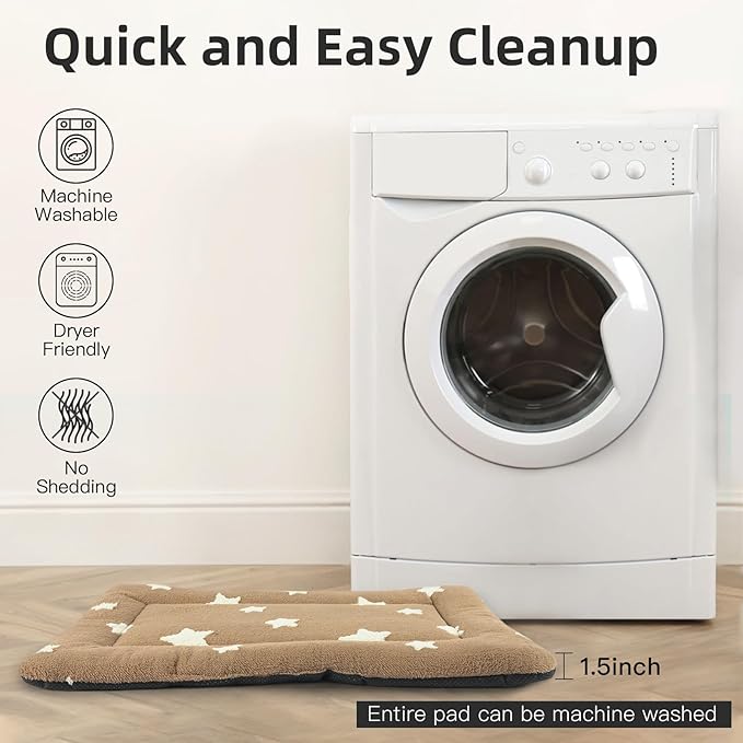 Mora Pets Cat Bed for Indoor Cats Washable Dog Crate Pad Cute Star Dog Bed Mat for Small Dogs Pet Kennel Pad for Cage Soft Flat Puppy Kitten Cushion for Sleeping Anti-Slip Brown 22 x 13