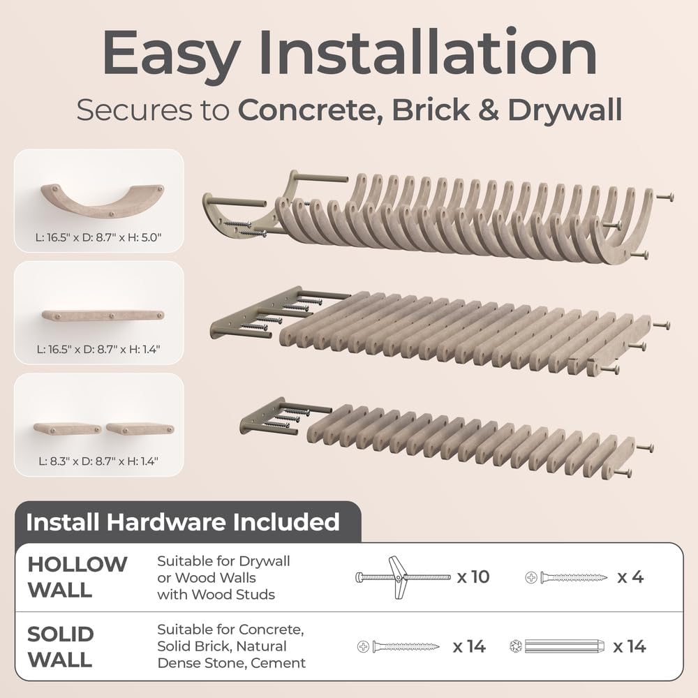- Effortless Paradise: This cat playground includes all installation hardware, allowing your fur-baby to start exploring right away. Our cat climbing shelves securely attach to concrete, cement, brick, dry wall and more ensuring your cat’s safety.