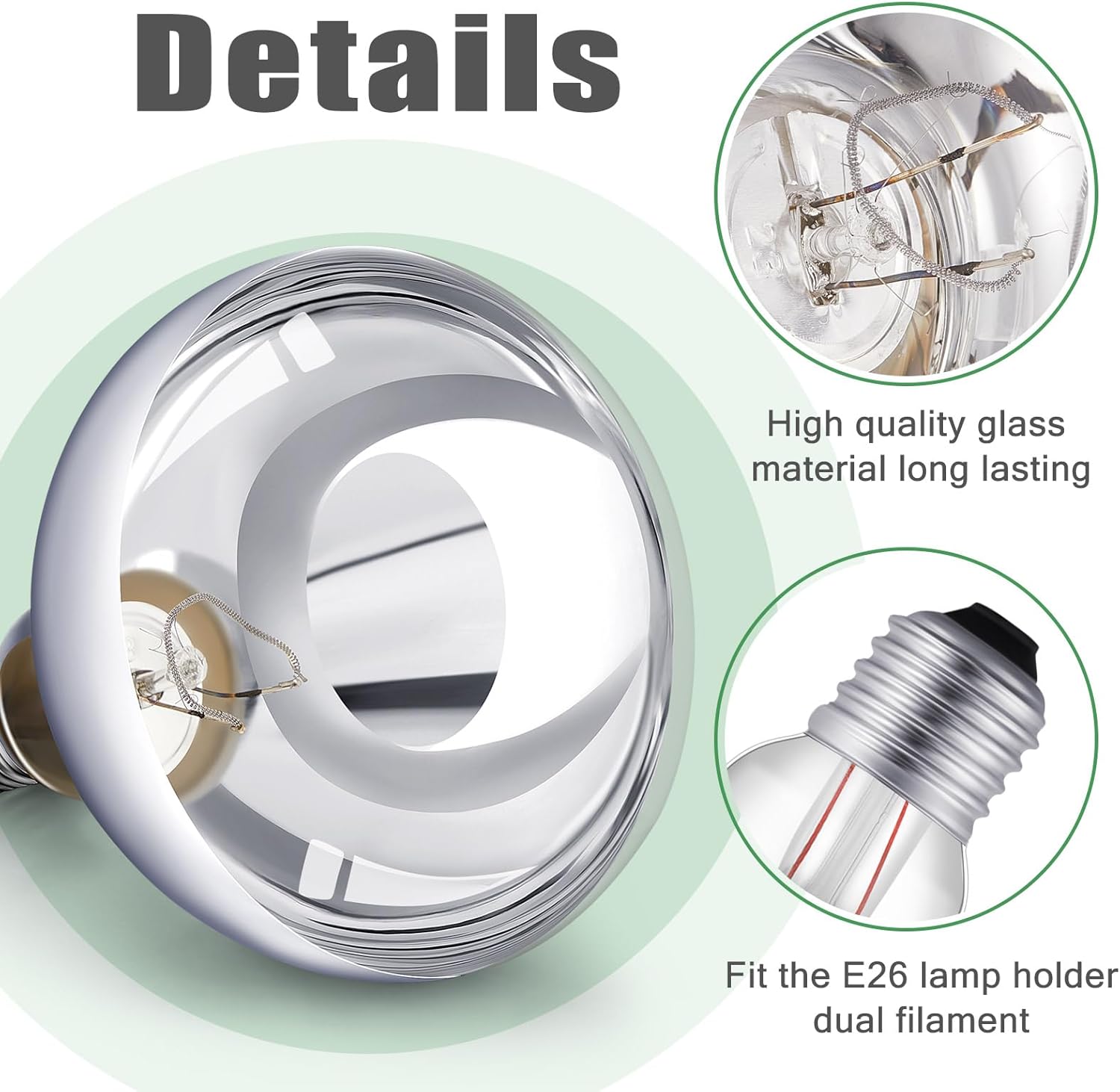 - Practical and Versatile: there are 4 pieces of bathroom heat lamp bulbs, which are an essential tool for pet owners and farmers alike; With their standard E26 medium screw base design, these bulbs are easy to operate and install, making them suitable for a wide range of occasions; They can be applied to provide radiant heat to keep your pets warm, create a sunbathing area for temperature adjustment, and even make reptiles and amphibians more active and comfortable