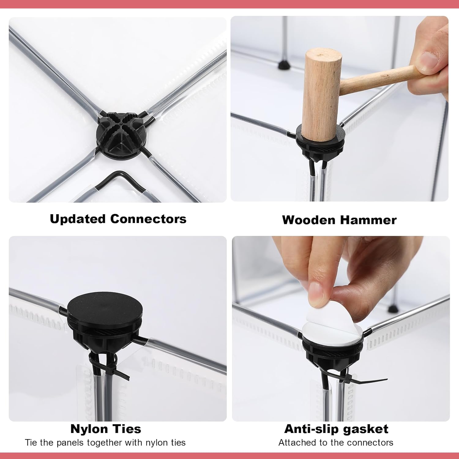 - [Easy DIY Installation]: Our transparent small animal pen is made of plastic, making it lightweight and durable. You can customize the panels into any shape, but also can move and disassemble the portable puppy playpen according to your needs easily.